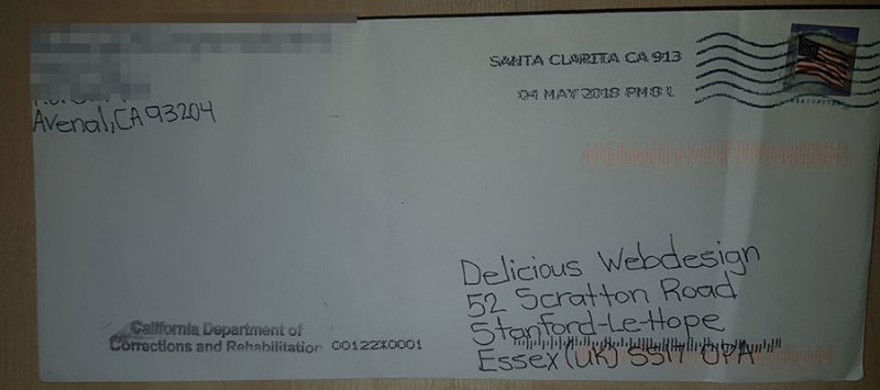 The enclosed letter was a very interesting website proposal and quote request from a future client that is currently incarcerated by the California Department of Corrections and Rehabilitation, we have replied to the letter and will hopefully be able to help another company / person build their business online with a new Responsive and Modern Website